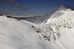 Cabin Pk in foreground…the start of The Classic ” Hoser’s Traverse” into the “Forbidden Zone”